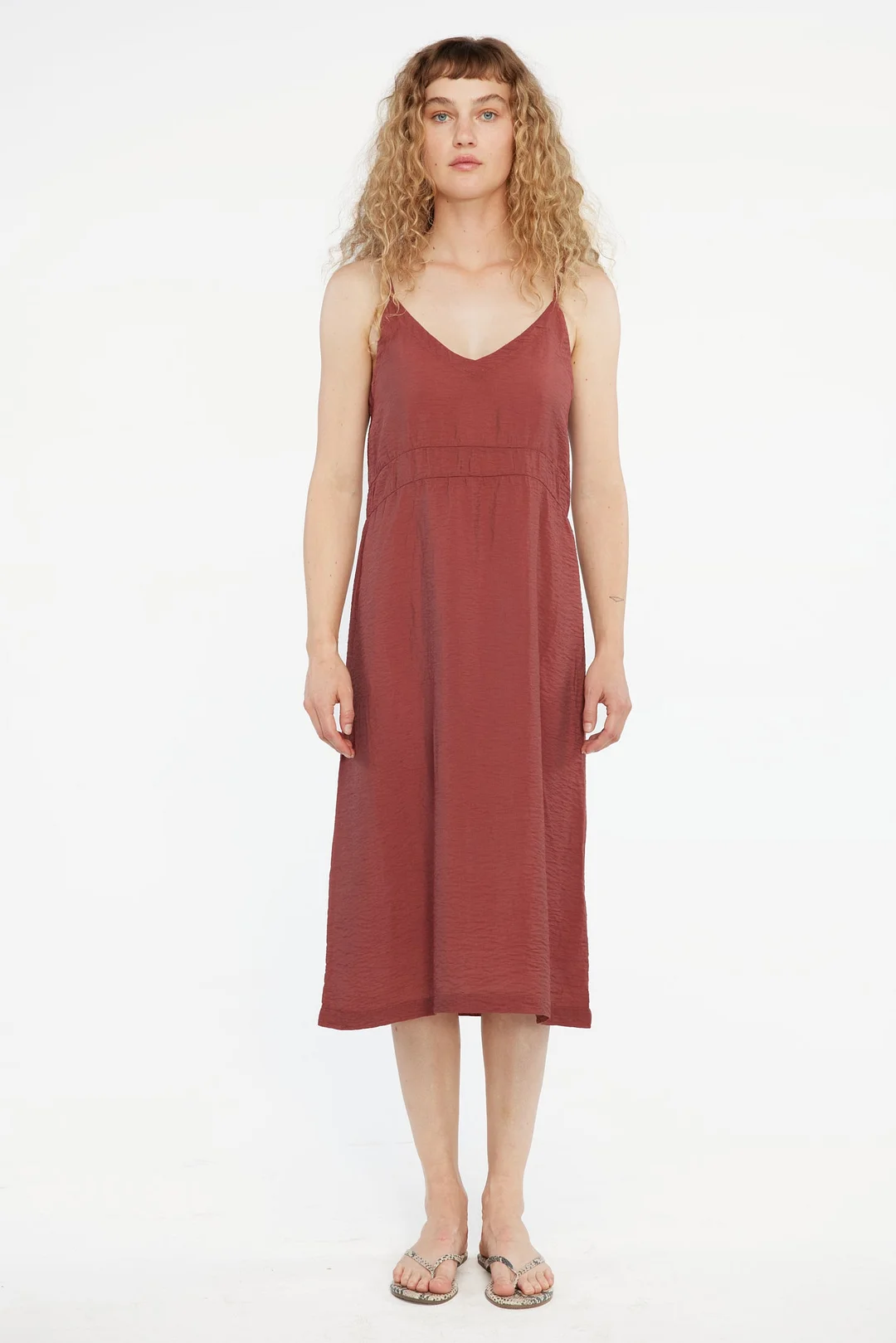 Lightweight, spaghetti strap slip dress with a v neckline and seam detail under the bust.  The Alma Slip is our go-to dress that everyone needs to have.
