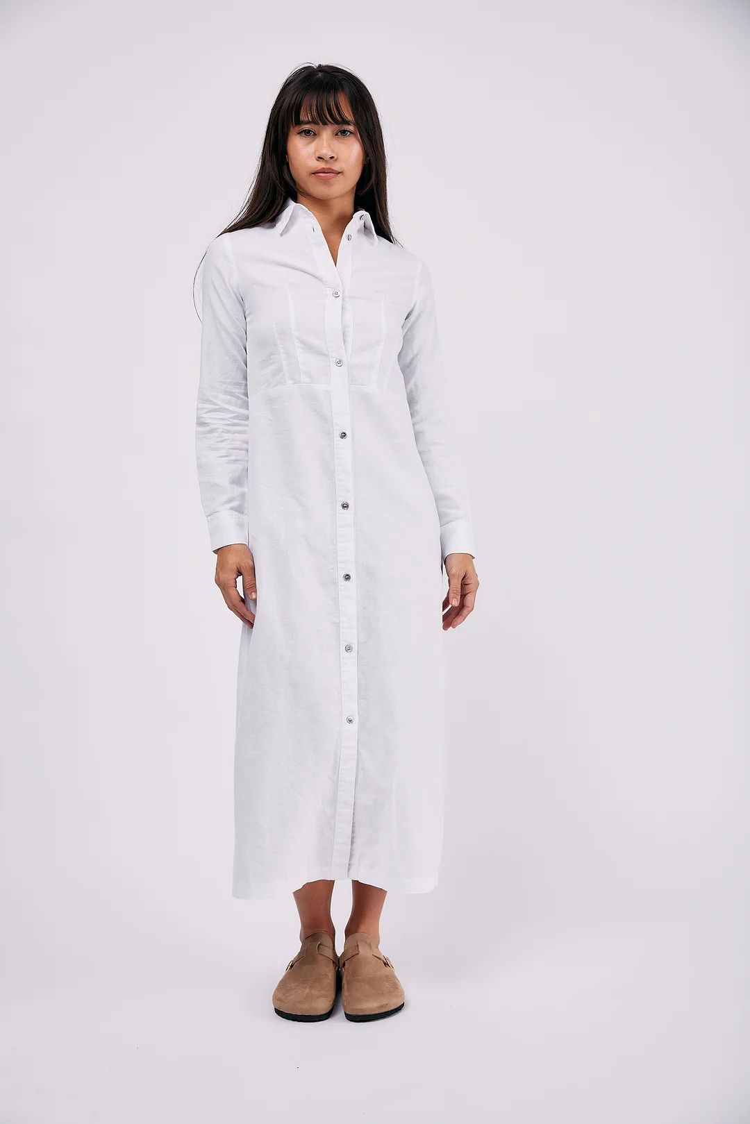 A timeless staple for the modern minimalist, the Nomad Dress is designed for effortless versatility. Made from 100% organic french linen , this lightweight button-down dress is breathable, soft, and endlessly wearable. Whether worn belted, open as a duster, or buttoned down as a dress, it’s a wardrobe essential that moves with you.