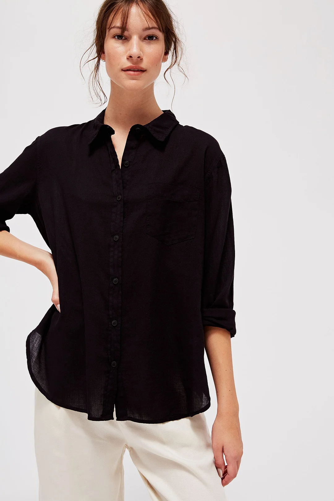 If you're looking for a more slim feminine fit, try the Super Fine Parker Button Up.