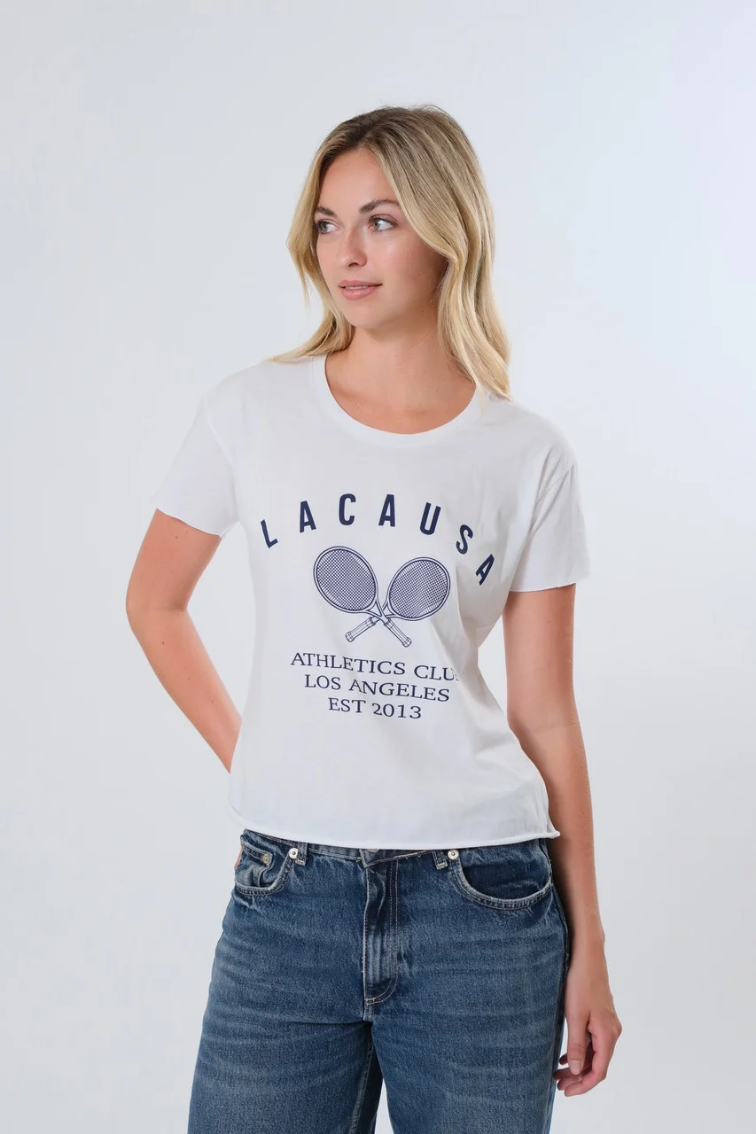 Crafted from soft, 100% premium cotton right here in Los Angeles, the Club Tee is your perfect sustainable staple. Featuring vintage-inspired tennis graphics, it's designed to keep your style effortlessly chic and your conscience clear. Sustainably made, comfortably classic, and always California-cool.